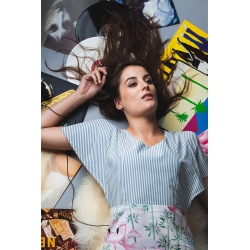 Cette version subtilement rayée de la robe EGERIE vous accompagnera toute la journée. Son large empiècement imprimé flamant rose apporte une touche d'originalité et de modernité.